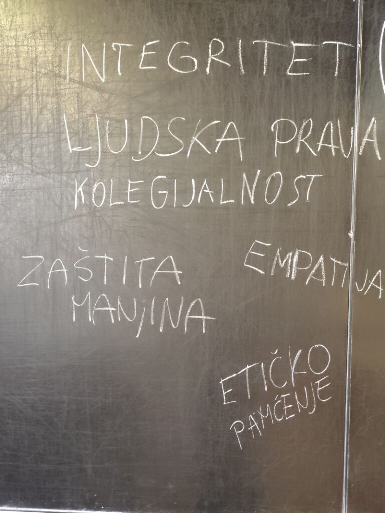 Cilj radionice bio je povezati posjet Jasenovcu, usvojene ishode iz predmetnog područja, ali i uspostaviti empatični i emocionalni kontakt sa stradanjima nevinih ljudi unutar totalitarističkih režima. Svaka grupa pronašla je jednu ključnu riječ koja je predstavljala simbol otpora diskriminaciji i pobjedu slobodnog mišljenja nad represijom.