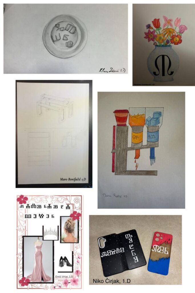 Znatiželjni, kreativni i motivirani učenici 1. D razreda, nakon usvojenih odgojno-obrazovnih ishoda u nastavi Hrvatskoga jezika, učeničkim istraživanjem i kreativnim promišljanjem suvremene primjene i aktualizacije glagoljice i ove su godine uspješno ostvarili projekt Očuvanje kulturno-umjetničke baštine glagoljaškoga nasljeđa Hrvatskoga primorja (voditelj projekta: Tina Udović, prof. savjetnik) ujedno obilježivši Dan hrvatske glagoljice i glagoljaštva koji se, na inicijativu Instituta za hrvatski jezik, od 2025. godine obilježava 22. veljače. Svojim su izvornim, kreativnim radovima, glagoljaškim globusom otoka Krka, pozivnicom za maturalnu večer ispisanom glagoljicom, držačem za salvete u obliku glagoljičkog slova, glagoljicom dekoriranim noktima, namještajem s motivima glagoljice te mnoštvom stvarnih, uporabnih predmeta nastalih u projektu učenici 1. D razreda istaknuli vrijednost očuvanja glagoljaške baštine Hrvatskoga primorja, predložili moguću primjenu glagoljice u stvarnom i suvremenom okružju te u cijelosti ostvarili ciljeve projekta. Istraživačkom i problemskom nastavom Hrvatskoga jezika ostvareni su odgojno-obrazovni ishodi predmetnog kurikula i međupredmetnih tema u međupredmetnoj korelaciji sa strukovnim i općeobrazovnim predmetima.